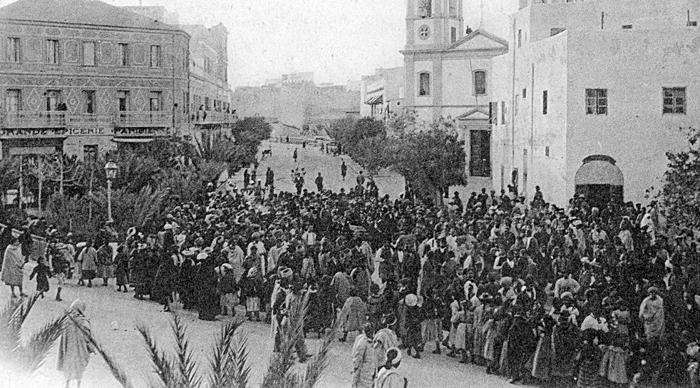 de l'Église et entourant le curé Descroix, les catholiques de Sfax