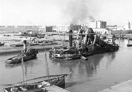 La drague suceuse "Sagittaire" dans le port de Sfax - Fin 1949. (Photo G. Bacquet)